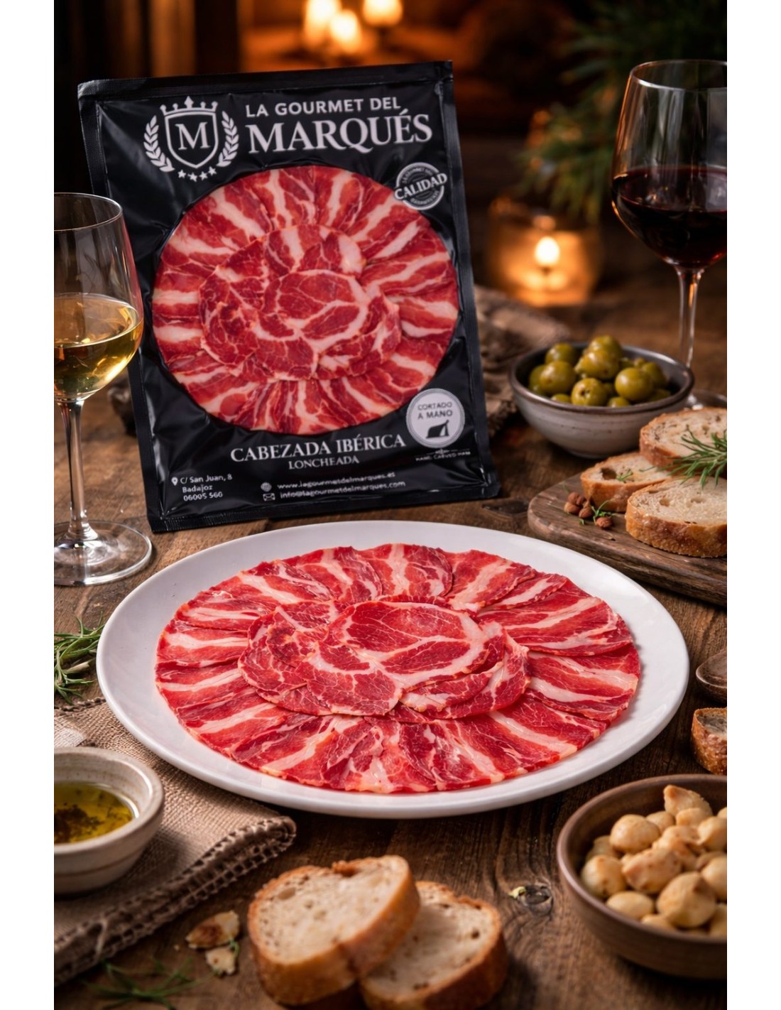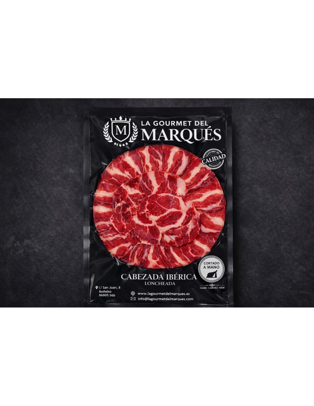 Tras un proceso de curación lento y natural en secaderos tradicionales, la cabezada desarrolla un perfil aromático intenso y una textura tierna que se funde suavemente en boca. Su veteado natural ofrece una experiencia gastronómica rica y elegante, muy apreciada por los amantes de los ibéricos.